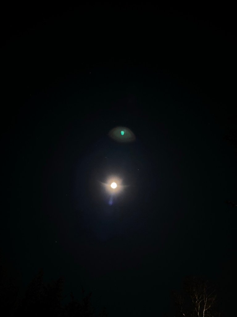 In awe of the full moon in true fashion I broke out my camera/phone. It was so bright that the light danced around, and left me with an angel among the stars.
