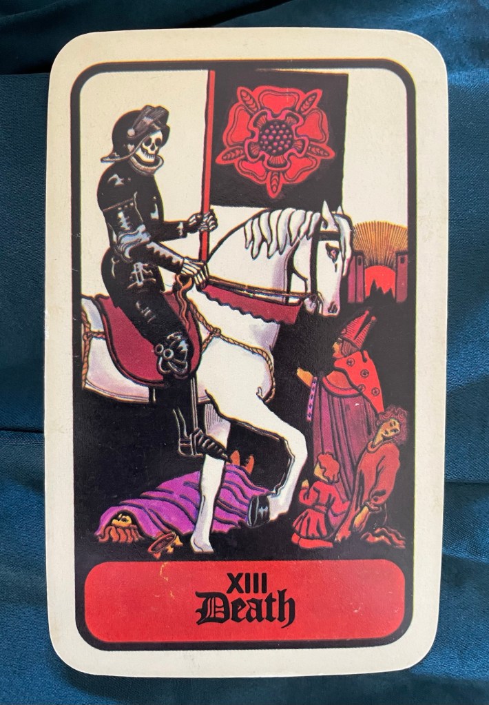 Yesterday morning I pulled the death card as the general feel of the day. At dinner with a friend, I noticed he had a Marseille deck of tarot cards. Once more, I picked up the deck, and asked what I could expect this year. I pulled the death card once more. He asked what it meant. I explained how it is the end of one cycle making way for something new. Kind of appropriate as I say goodbye to another year while starting my next trip around the sun.
